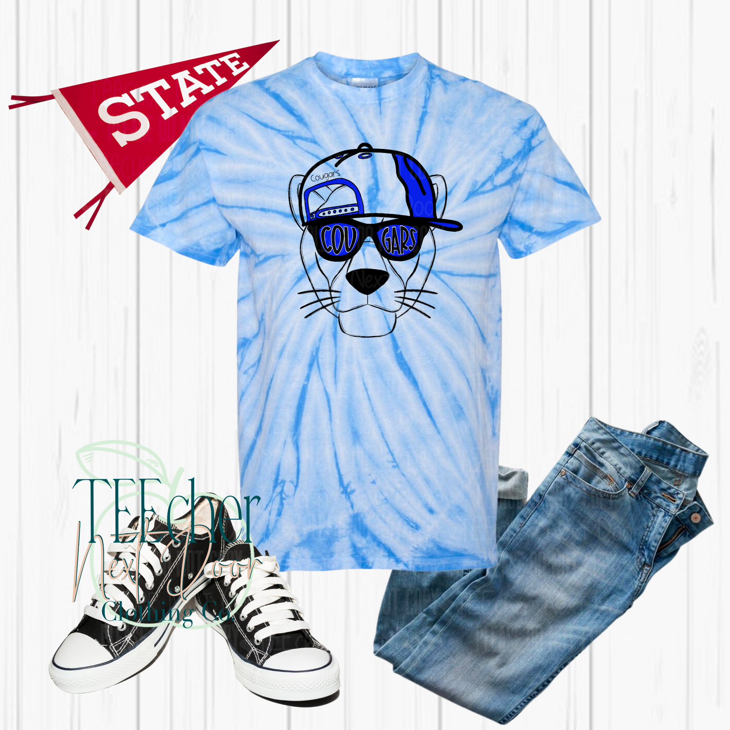 No two tie dye tees or bleached tees will be the same. This is a mockup of the gray tie dye so it will not have the exact same look when made.