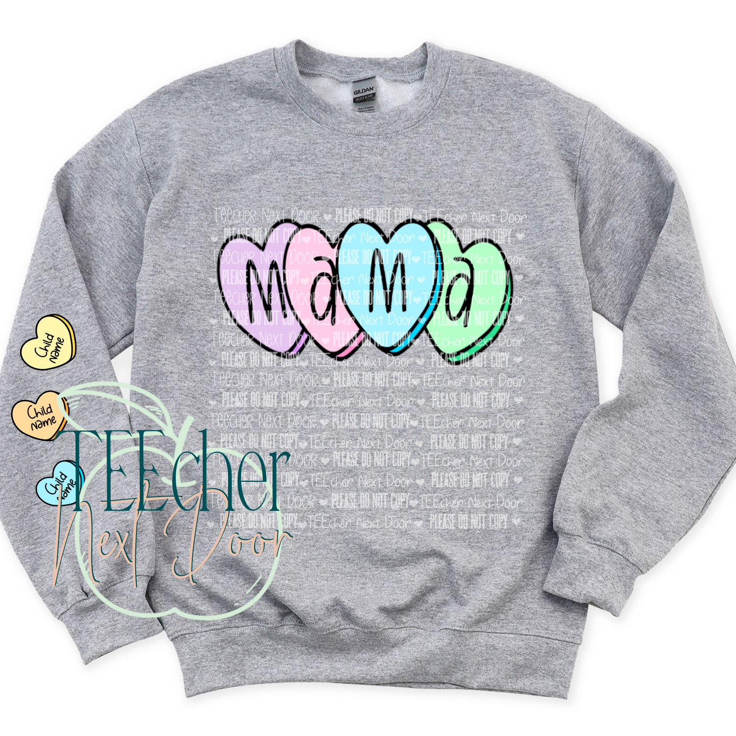 Name on the chest can be customized and there will be one letter per heart. So, if you choose GRANDMA then there will be 7 hearts on the chest.