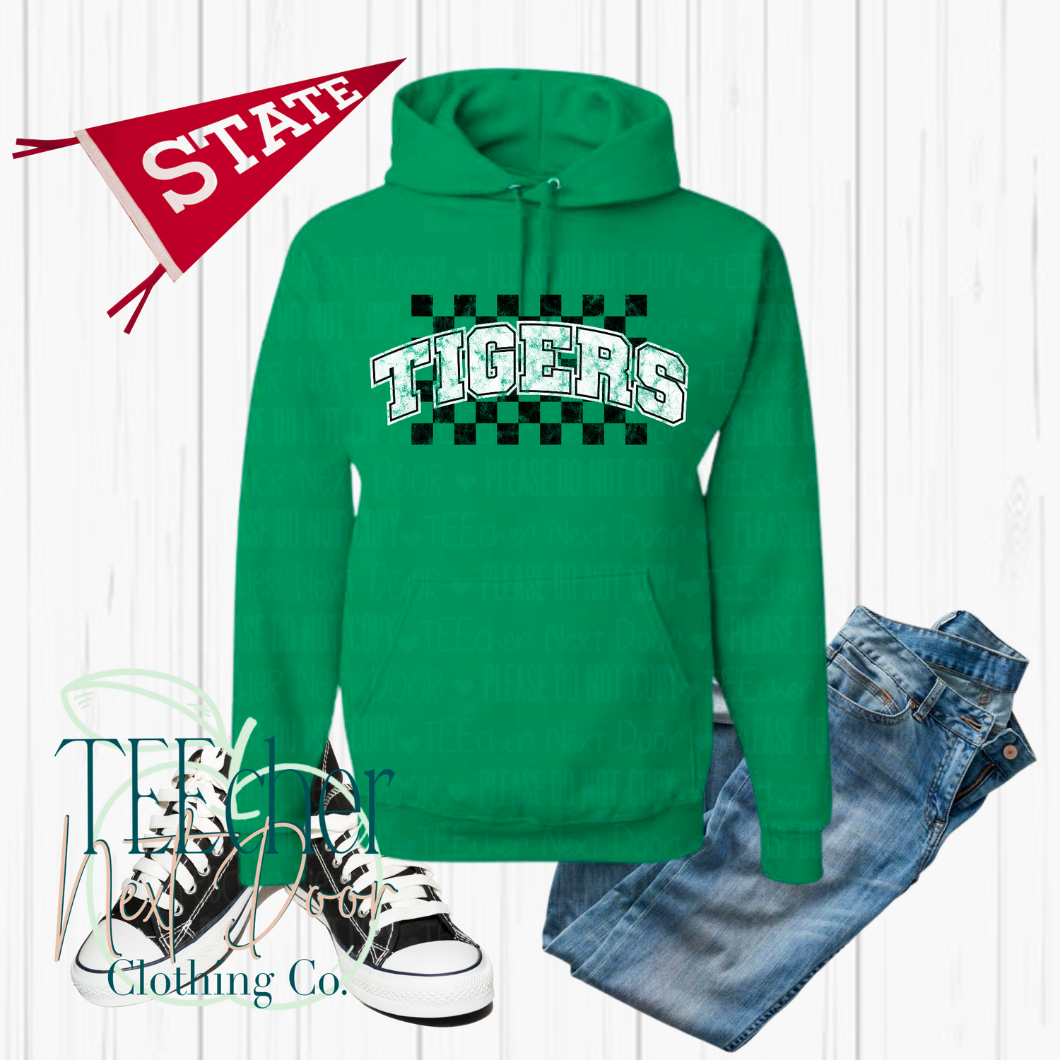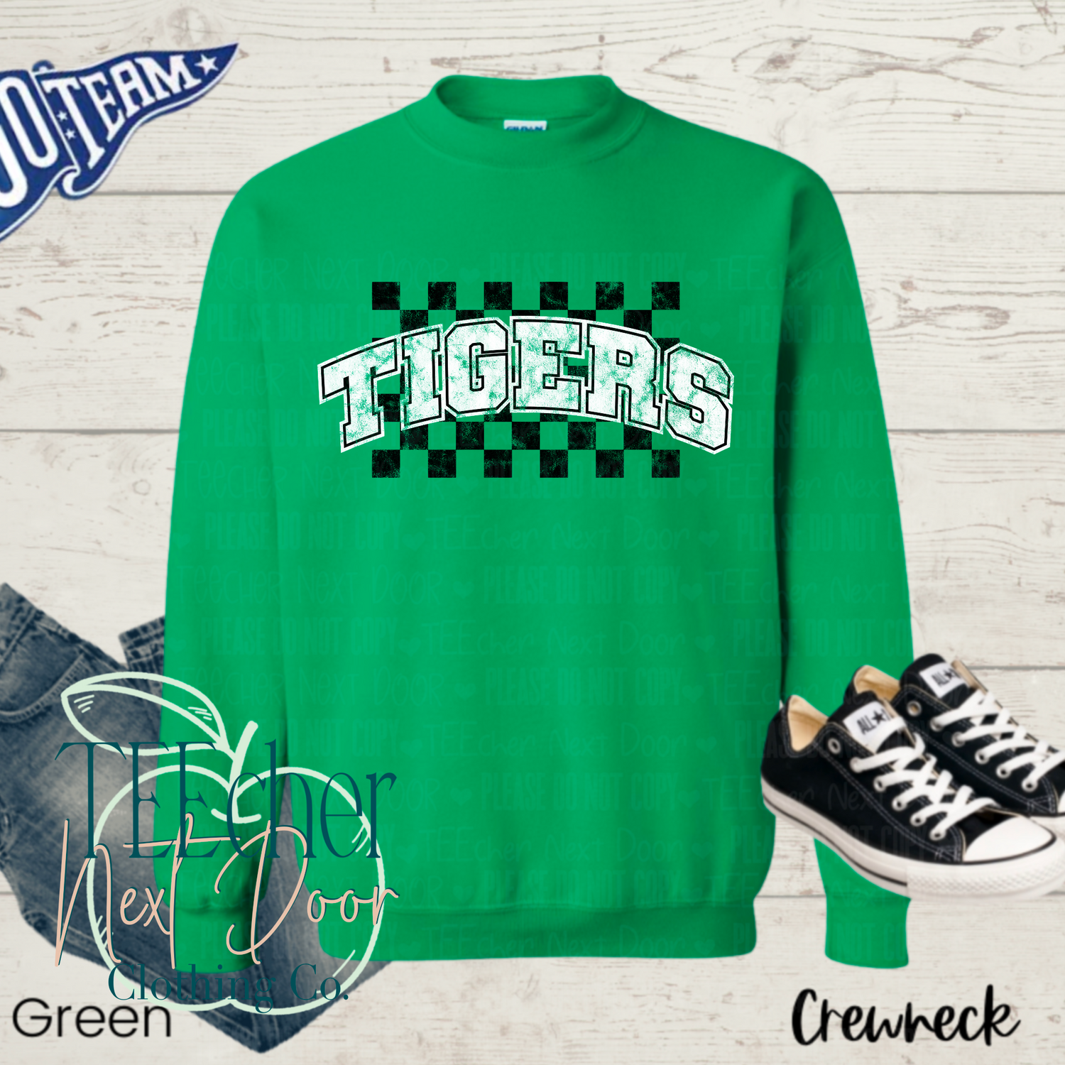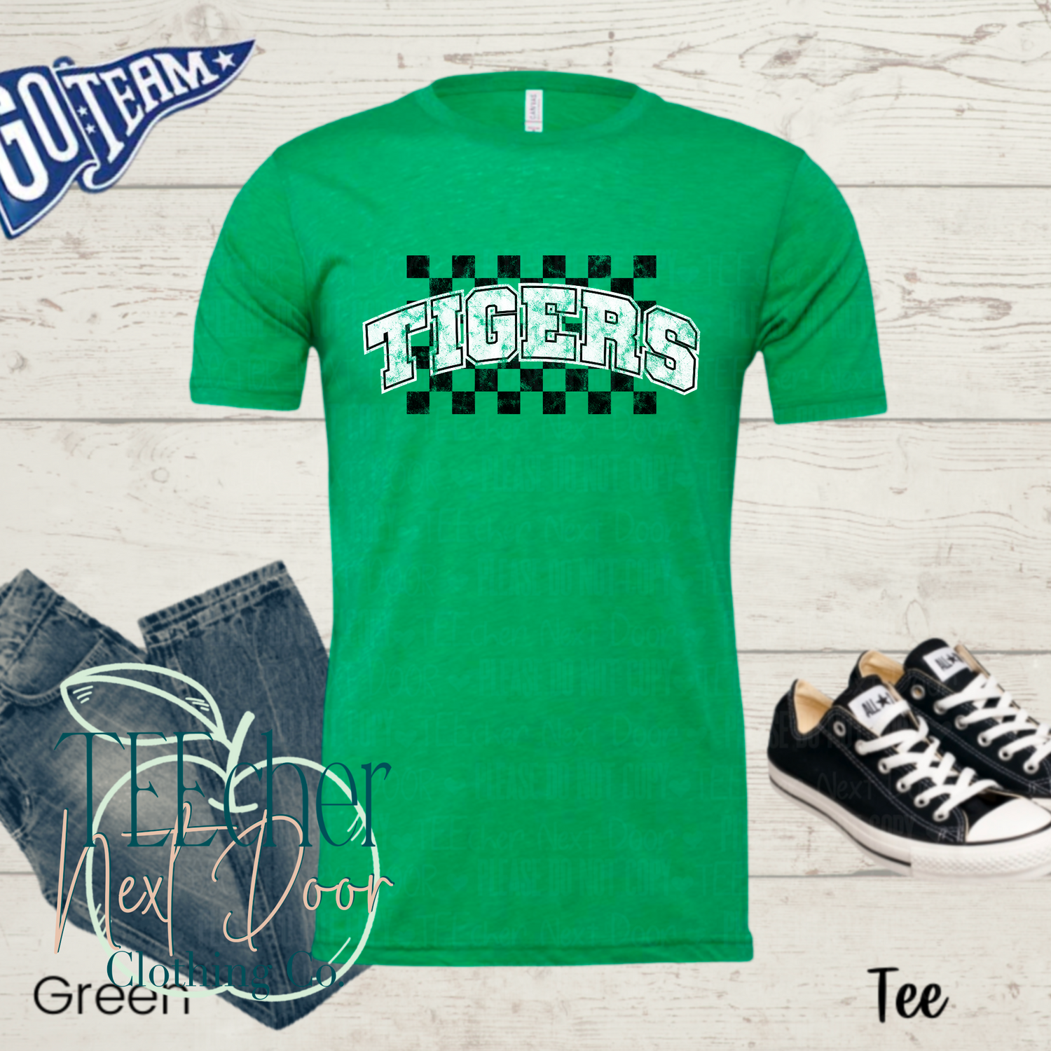 Tigers Checkered Distressed- Green